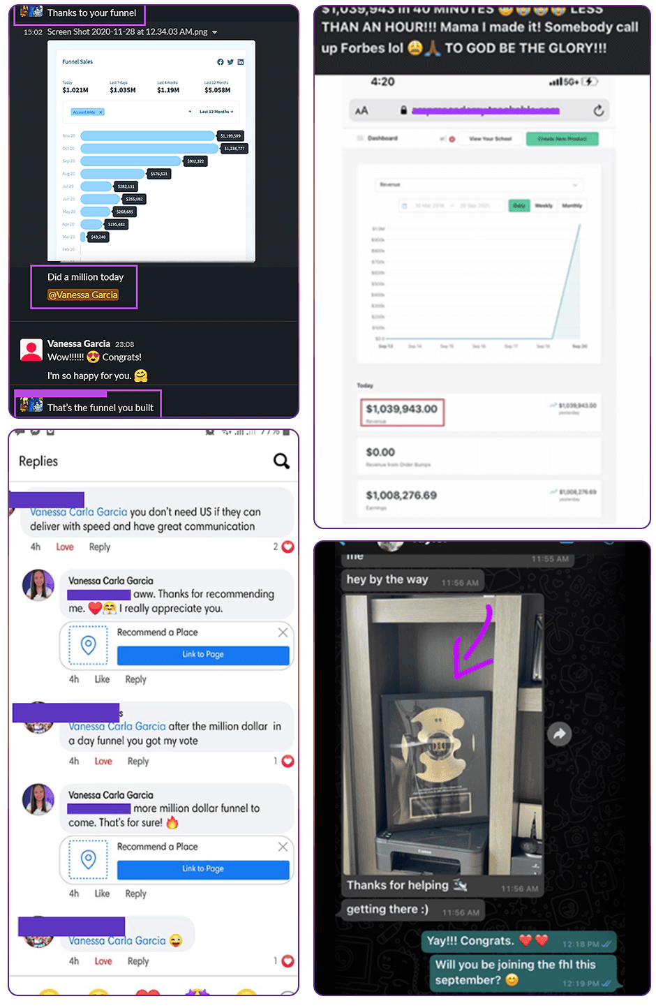 “Vanessa and her team aren’t just funnel builders—they’re problem solvers. They revamped my existing funnel in record time and it worked so well that it broke the server and generated $1M in sales in less than an hour. If you’re ready to scale, this is your team.”